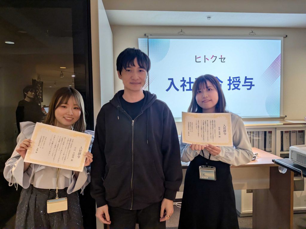その後入社辞令の授与も行われ、代表と新入社員の3ショットも撮影できました📸✨