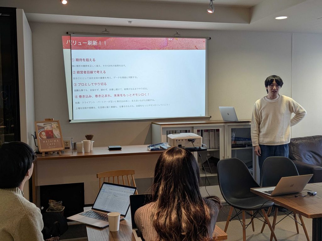 完成したバリューは、年末の全社会議で発表しました。
